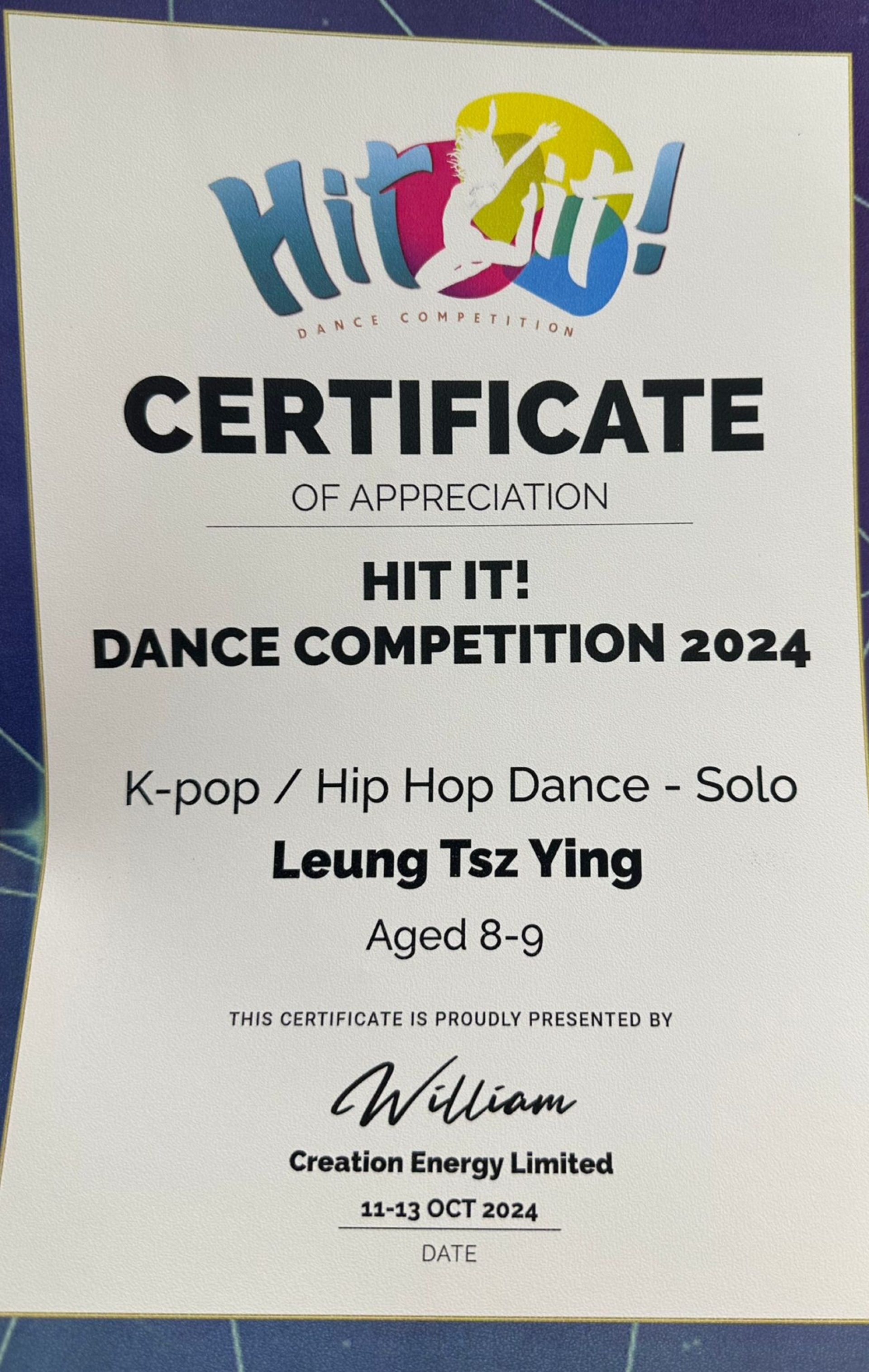 3A梁芷盈 銀獎K-Pop/Hip hop dance solo silver
