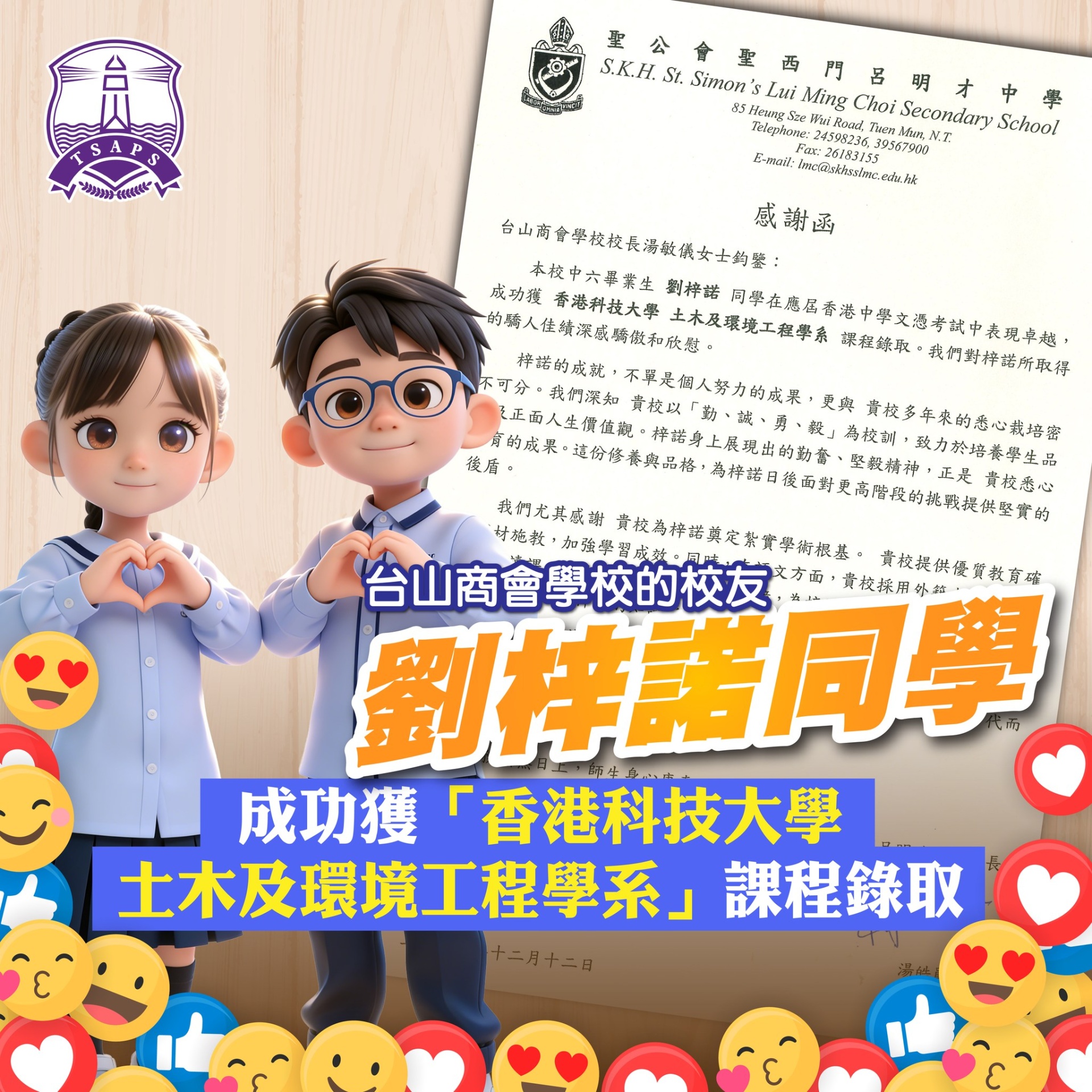 恭喜校友劉梓諾同學獲「香港科技大學─土木及環境工程學系」取錄!!