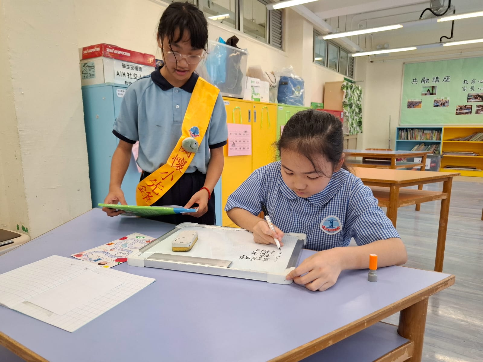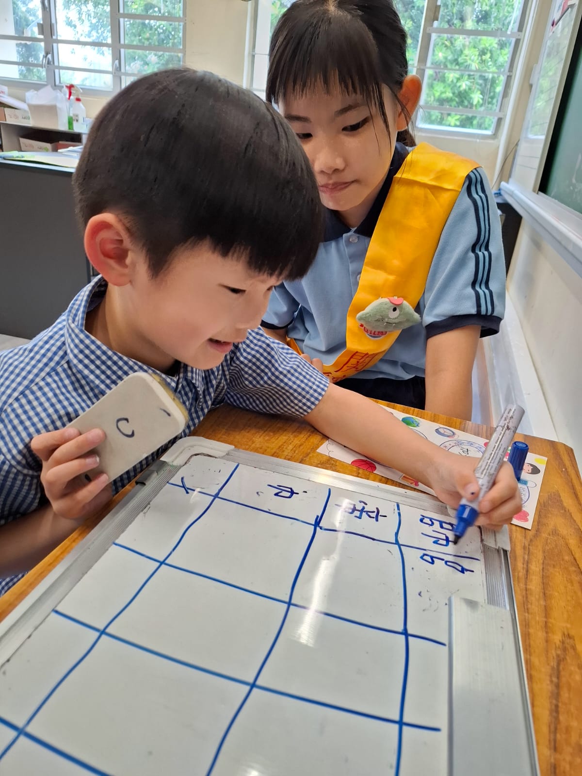 2. 配對:每名高小學生與1-2名初小學生組隊,每週固定1-2次午息時段進行輔導。