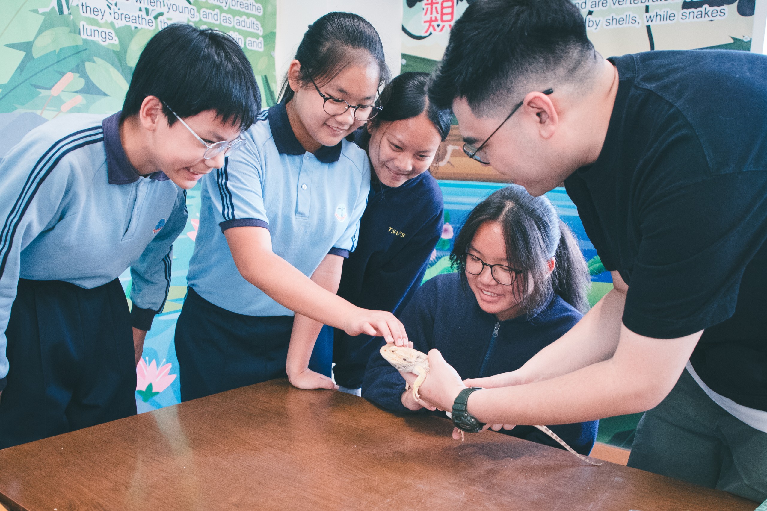 科學科設立「校內生態園」,飼養有陸龜、蜥蜴、守宮、倉鼠等動植物,透過配合課程內容帶領同學參觀以及觀察動物嘅生活,同學亦可以透過加入環保小天使參與照顧動物,從而啟發同學對生態環境的興趣,並加深對各種動植物的認識。